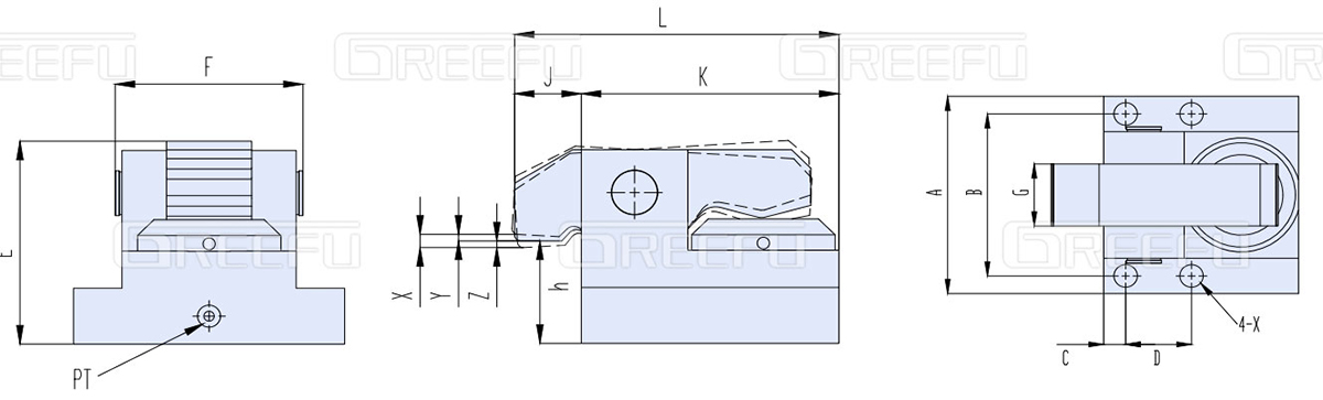 * 需根據貴司使用模具夾持部位厚度及T形槽尺寸,制作夾模器,相關參數詳見參照表或來電咨詢