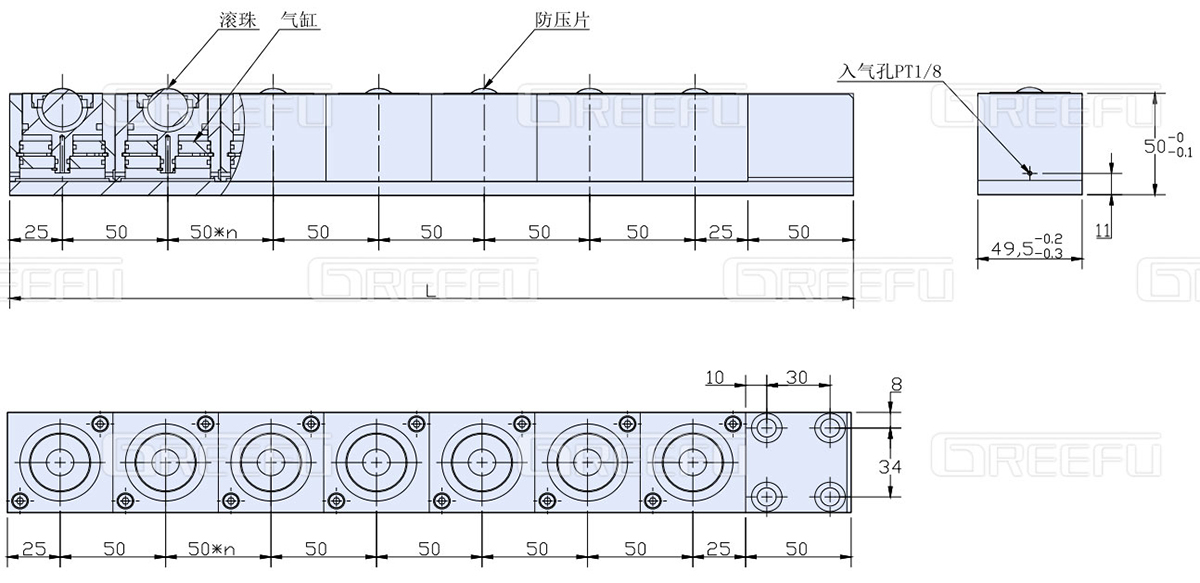 滾珠配合無油軸承,使其具有承載能力高,耐沖擊,耐高溫,滋潤能力強等特點,特別使用于重載、低速、往復或擺動等難以潤滑和形成油膜的場合。