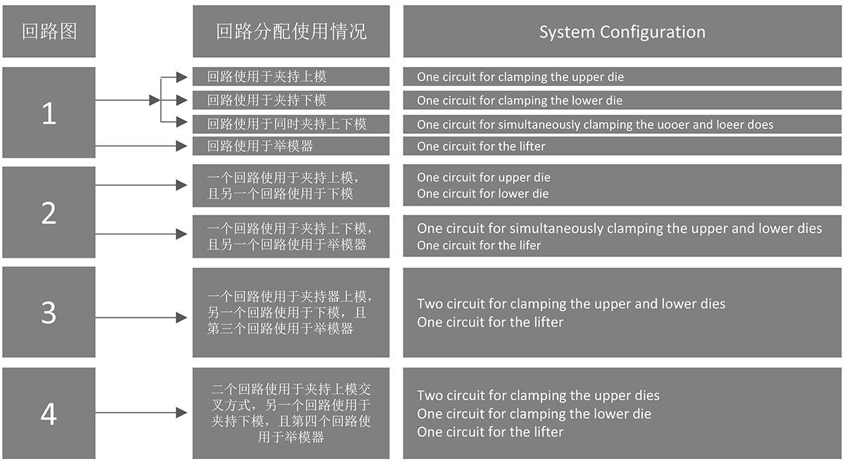 配置氣控閥保持油壓:配置氣控閥,即使因停電等原因而無法供氣,也能保持油壓,防止模具落下。