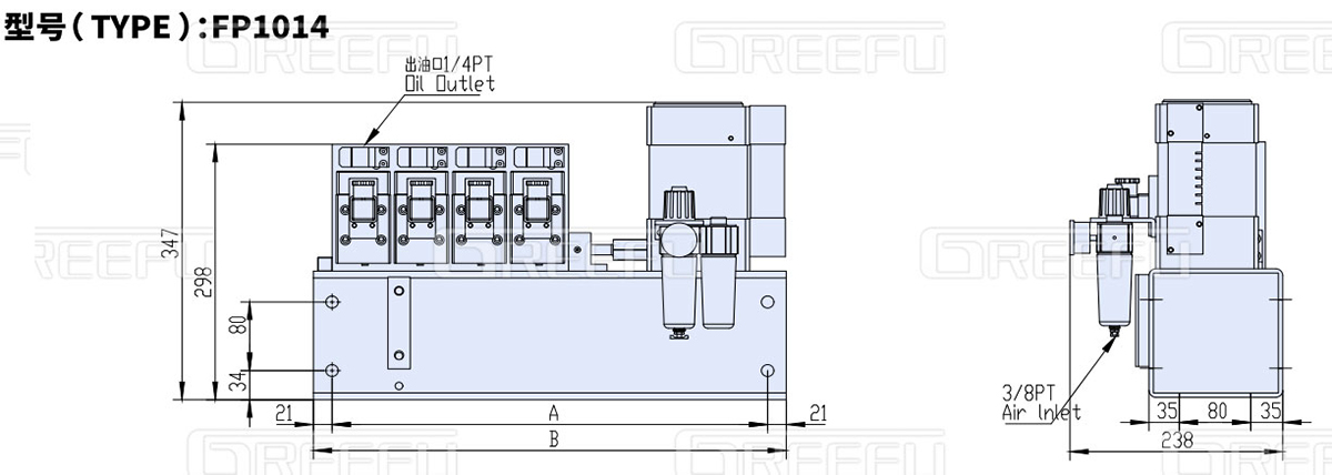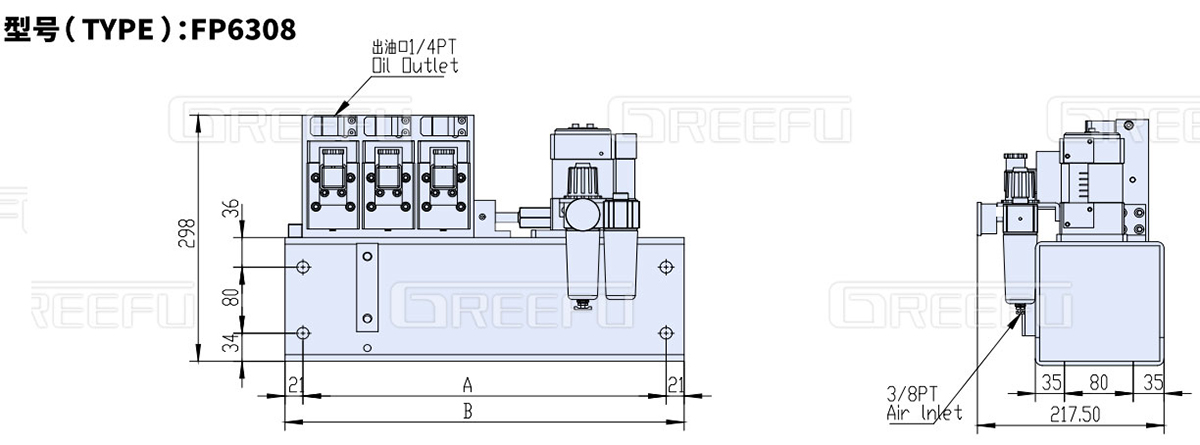 氣動(dòng)式油壓單元FP1014,利用空氣壓力驅(qū)動(dòng)泵浦, 由單體泵、壓力開關(guān)、電磁閥、氣控閥、 氣源處理器、油箱等組成
