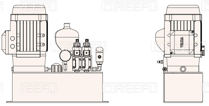 電動泵浦組合,利用電機驅動泵浦, 由電機、泵、蓄能器、壓力開關、油箱等組成